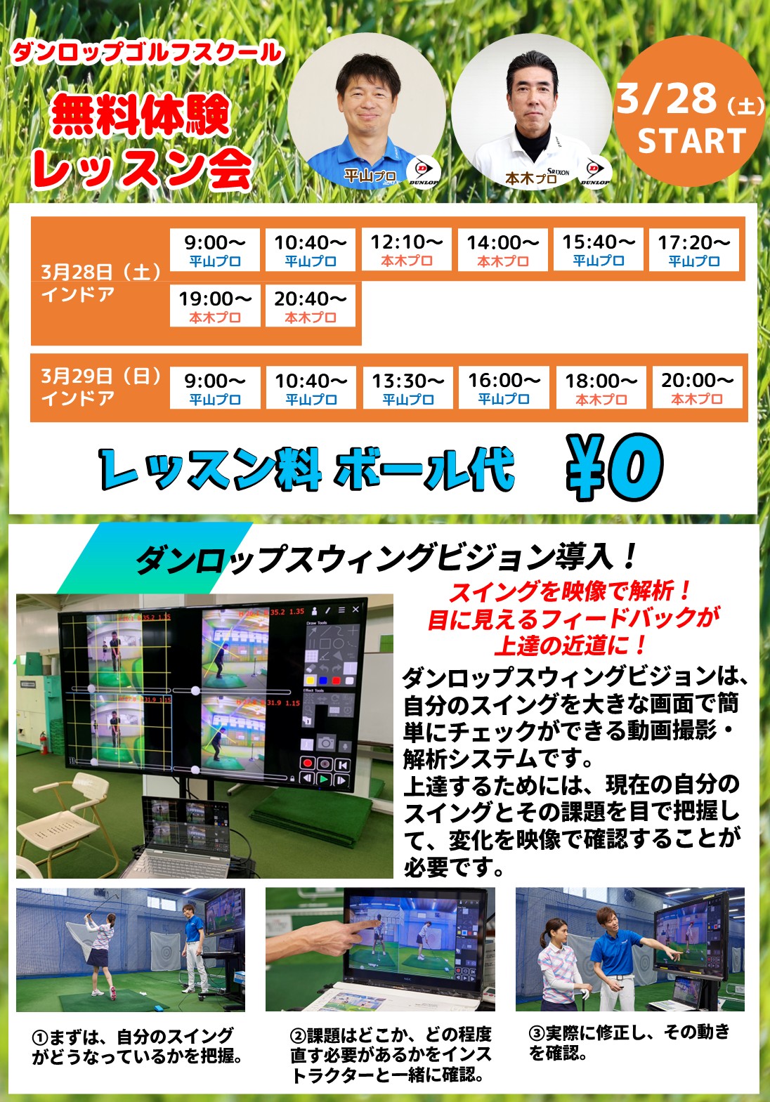 ダンロップスクールの無料体験レッスン会を3/28(土)3/29(日)2日間限定で開催いたします(^_^)v